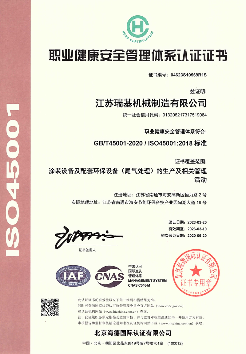 職業(yè)健康安全管理體系認(rèn)證證書(shū)